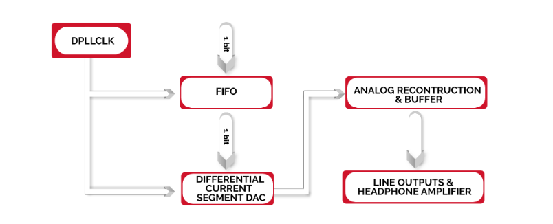 The quality of the conversion clock is crucial in a high-speed 1-bit system. The VOX uses a high-quality DPLL clock generator which is integrated into a jitter reduction architecture. By design, it does not require any Asynchronous Sample Rate Conversion solutions to achieve this.