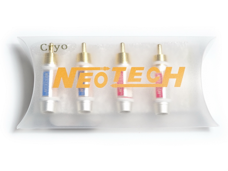 RCA Neotech DG-203 II Cryo connectors are made of oxygen-free OFC copper with 24K gold-plated coating and cryogenic-treated contacts. They have a red / blue marking for easy channel identification. The length of the connector is 47.0 mm.